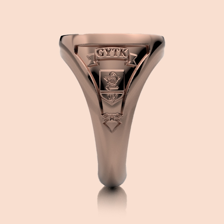A Semmelweis pecsétgyűrű 3 anyagváltozatban kapható: 14 karátos sárga-, fehér- vagy rozéarany. Az ékszer mellé a nemesfém összetételét leíró tanúsítványt biztosítunk.